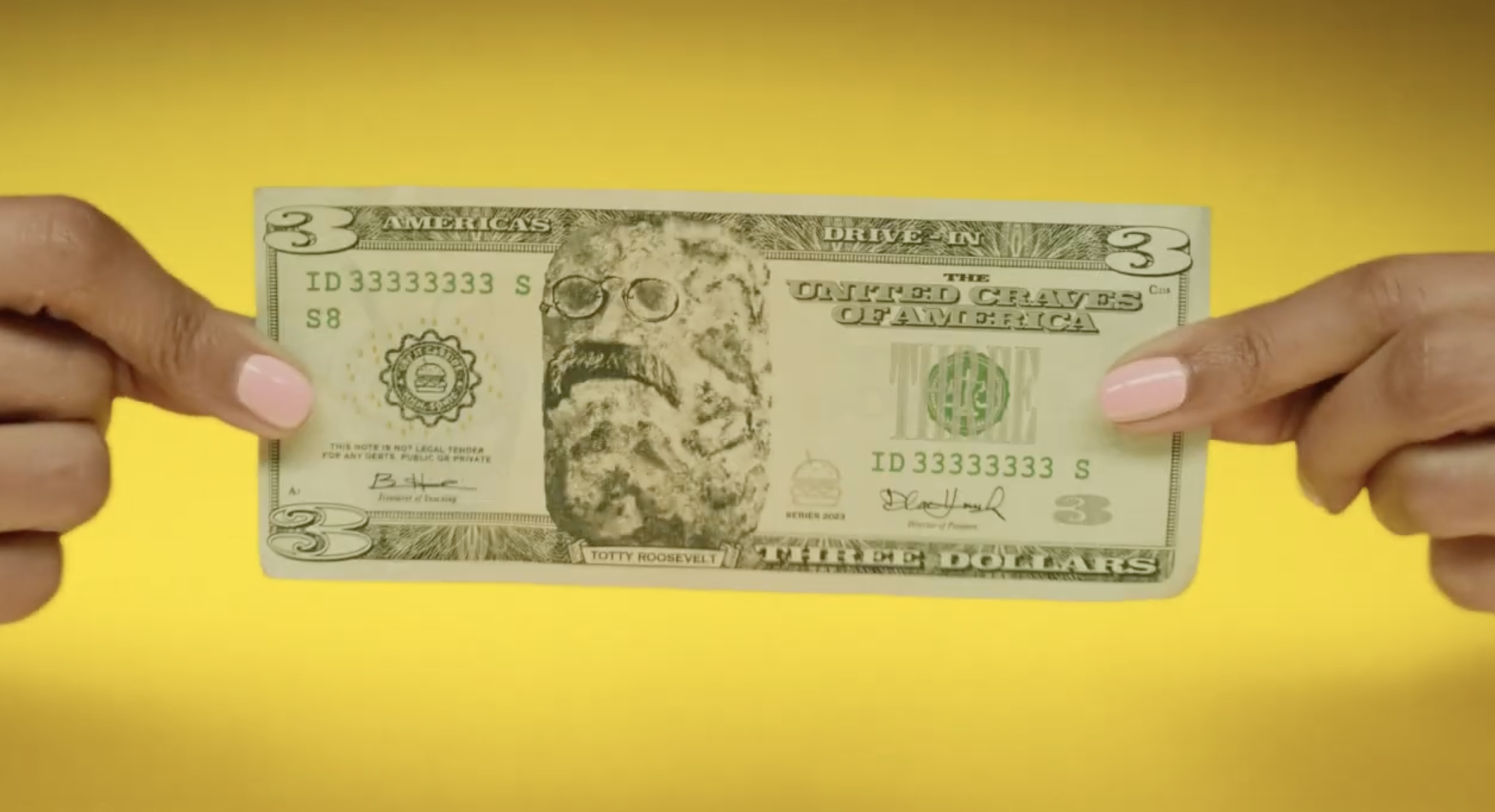 In this spot, we put a tot on a $3 bill and named him Totty Roosevelt.